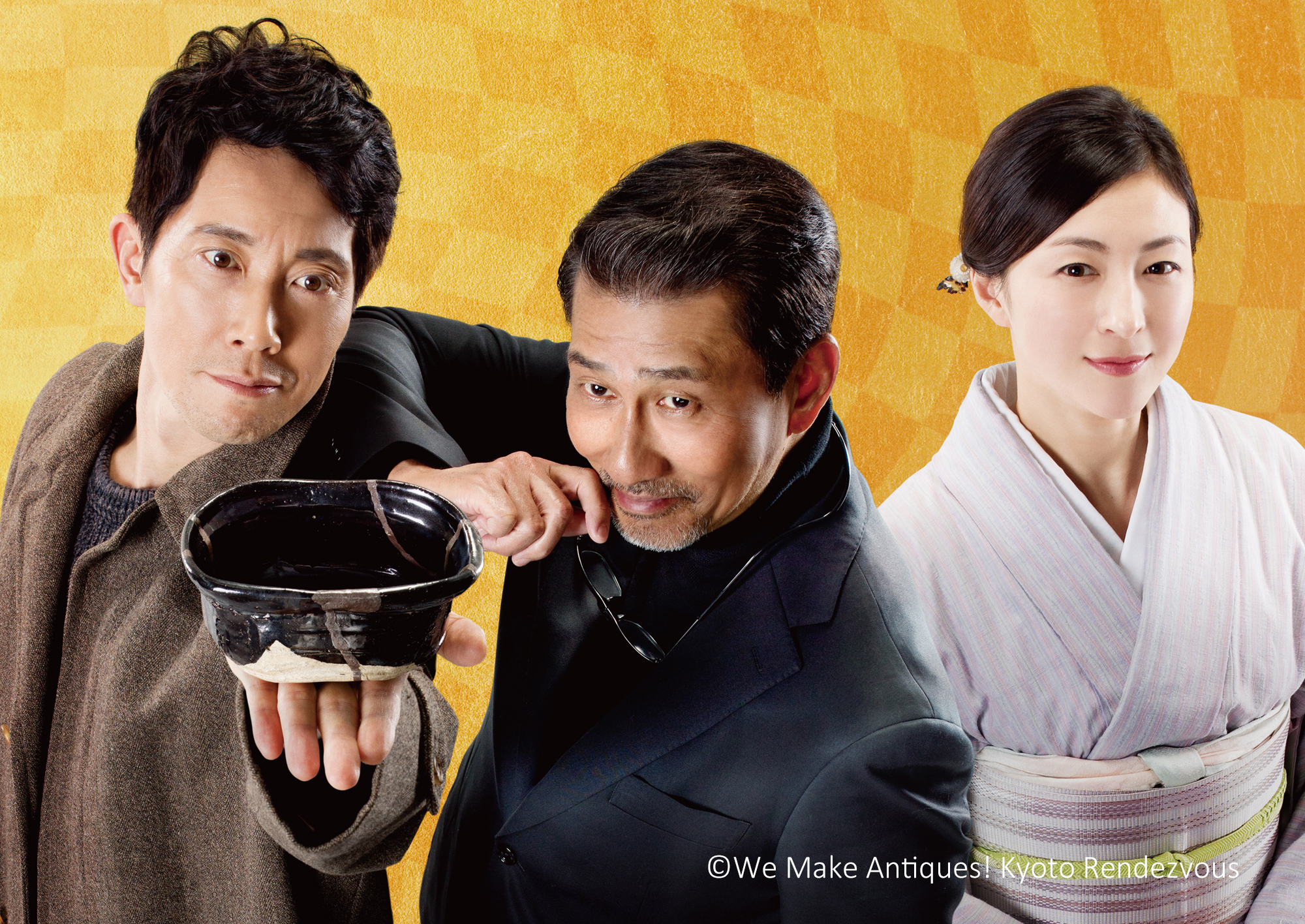 Synopsis: A dowdy antique dealer Norio in Kyoto is asked by a beautiful lady Shino to find a historically valuable teacup swindled by Master Oribe from 16th century which was passed on by her late father. Norio and a pottery artist Sasuke give her an authentic-looking imitation which Sasuke made for free as replacement. But shortly thereafter, they find out that Shino is a fraud; Shino recognizes their skills and proposes a deal to earn big money in conspiracy by unveiling an underground crime of vice dealers’ group selling off lots of fakes internationally. Teaming up with other talented buddies, Norio and Sasuke determine to drive the con-game and to get revenge on the villains who stained on their reputation in the past.