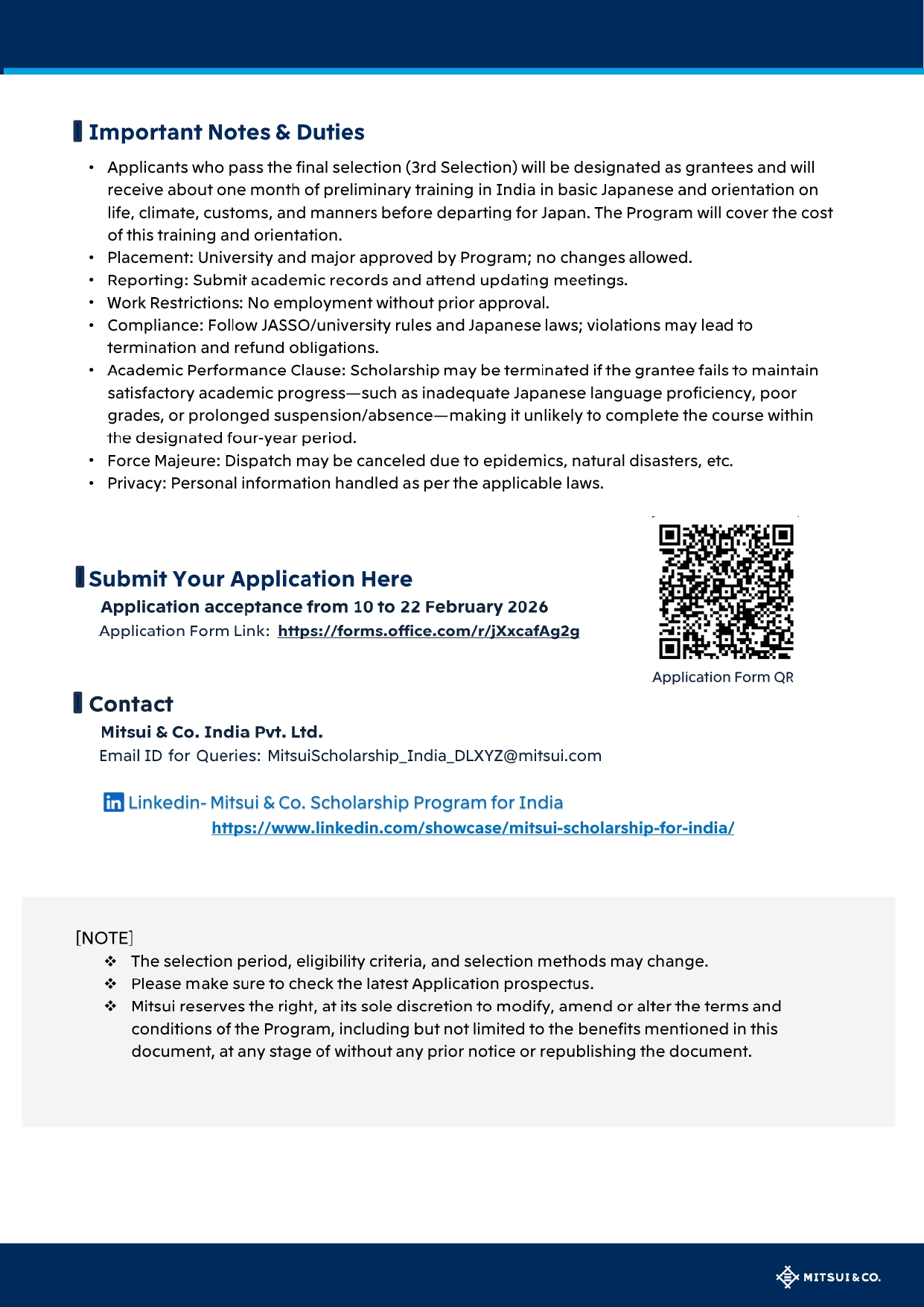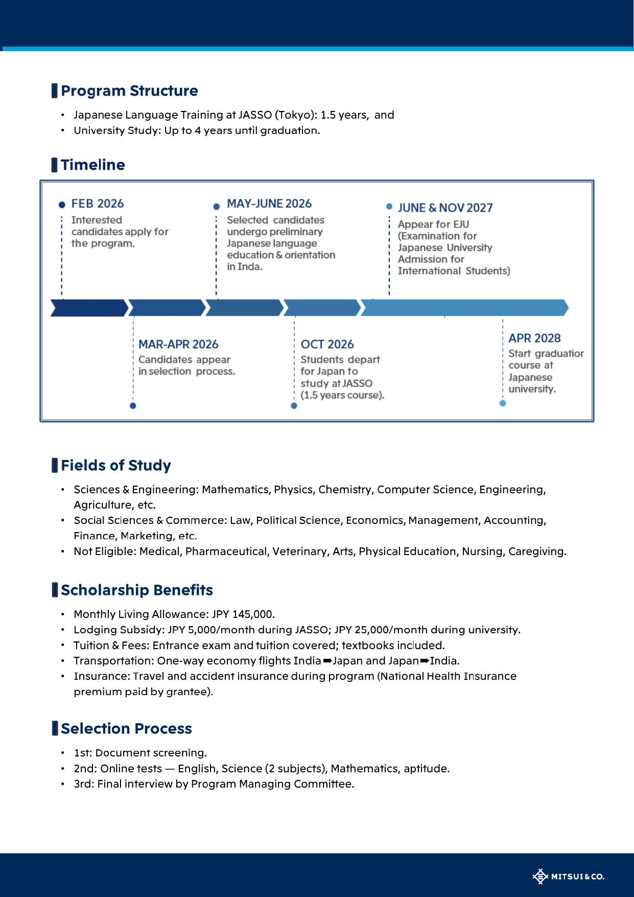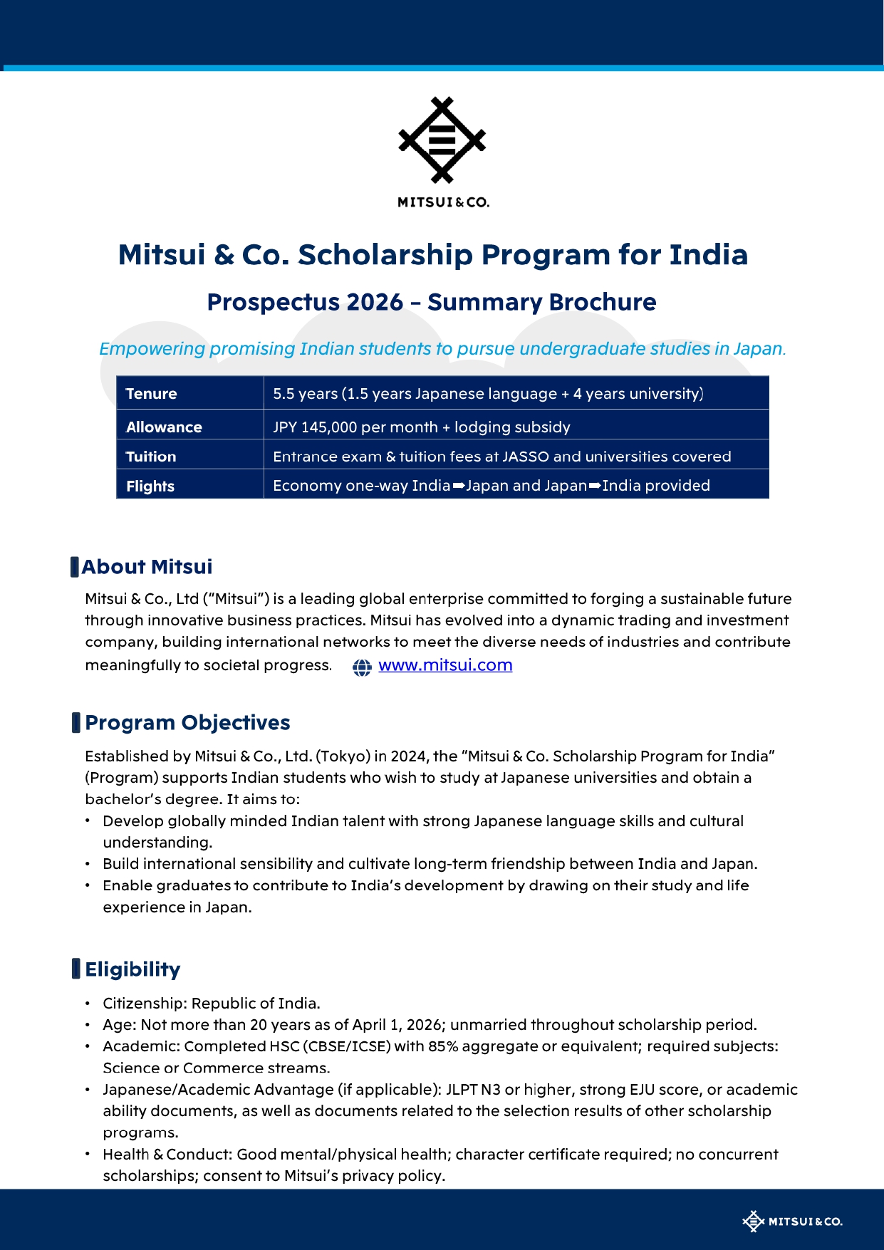 For details about the program and how to apply, please refer to Mitsui & Co. Scholarship Program for India | LinkedIn
